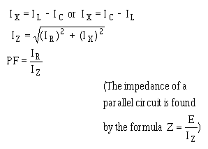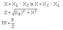 You should remember that in the series RLC circuit the following three formulas were used to find reactance, impedance, and power factor: