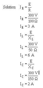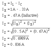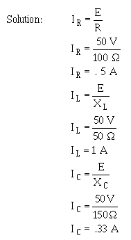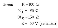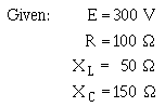 The example series RLC circuit shown in figure 4-11 will be used to solve for XL, XC, X, Z, IT, true power, reactive power, apparent power, and power factor.